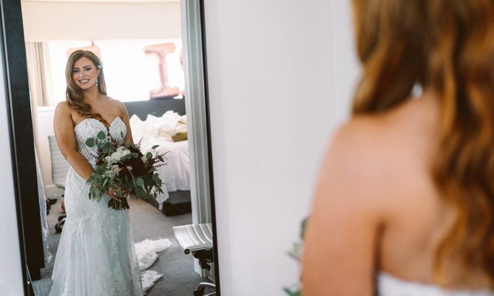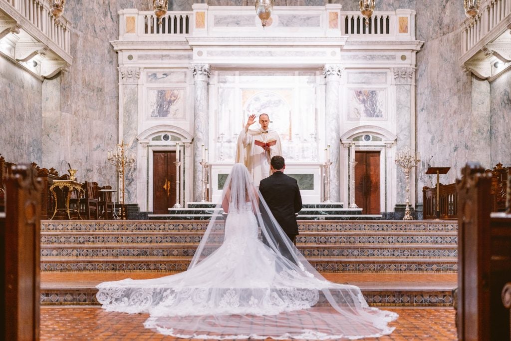 Our wedding ceremony was at the historic Saint Patrick’s Church in Philadelphia. We started our wedding day getting married at the church then had our reception at the Crystal Tea Room in downtown Philadelphia. We live in Philly and decided to have a downtown wedding since it’s the city we love and live in! Our church and venue were absolutely perfect and my dress looked amazing on the altar as I got married to my husband.