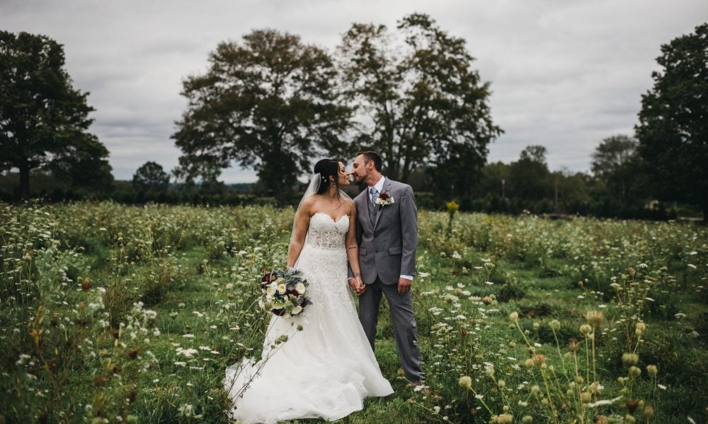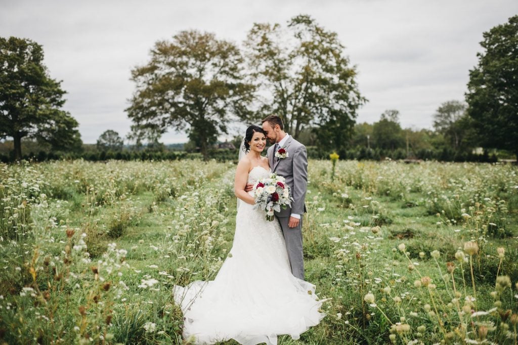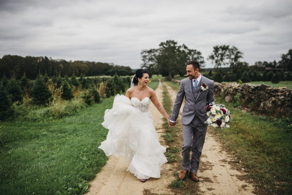 We wanted a Vermont-feel wedding, but in our home state of Connecticut. Allen Hill Tree Farm in Brooklyn, CT had the most beautiful barn strung with lights, and a field of Christmas trees which made for a beautiful photo landscape.