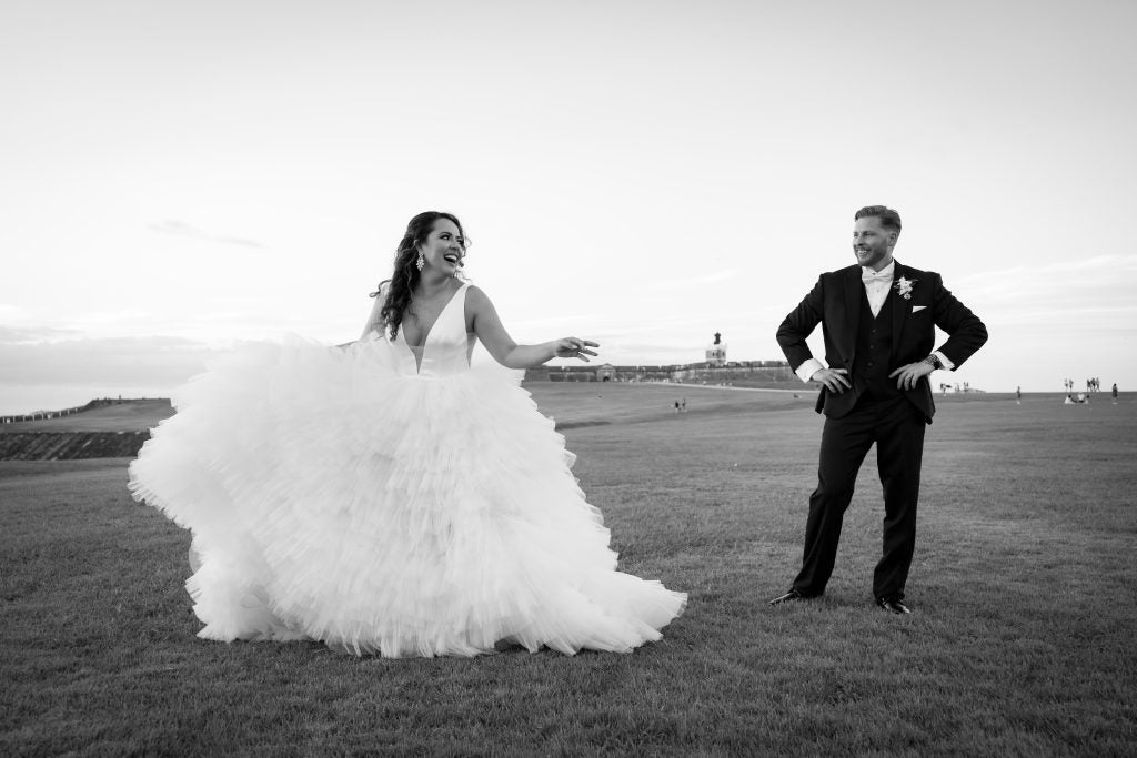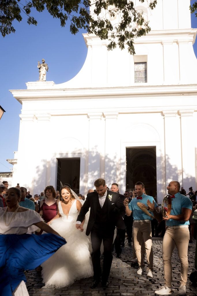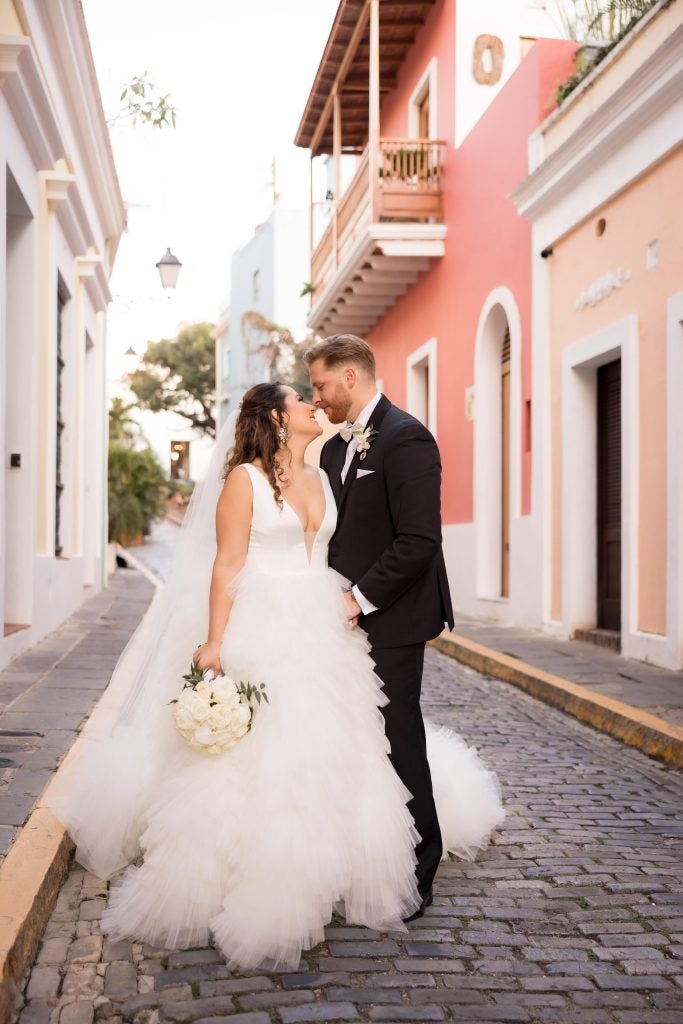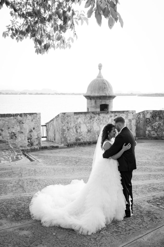 Our wedding was everything I dreamed of and more. More than anything, I wanted a wedding full of fun, family, and love. We chose Old San Juan, Puerto Rico. Most of my family is in Puerto Rico & most of Ross’s family could easily fly in from New York. Old San Juan was perfect for everything that we love – the beach, nice weather, good food, beautiful art & architecture, a mix of cultures, and cats. Our ceremony was in the San Juan Bautista cathedral – the second oldest Cathedral in the Americas. After the ceremony we surprised everyone with a live plena band and we danced around the plaza (the first plaza in old san juan) in front of the cathedral. Then Ross & I (in my Ross dress) walked to El Morro for our pictures. The reception was in Hotel El Convento – a former convent from the 1500s. For food we had a range of Puerto Rican dishes, we had some typical street food for late night snacks, and even did a tequila toast for the best man speech (not puerto rican, but Ross loves tequila).