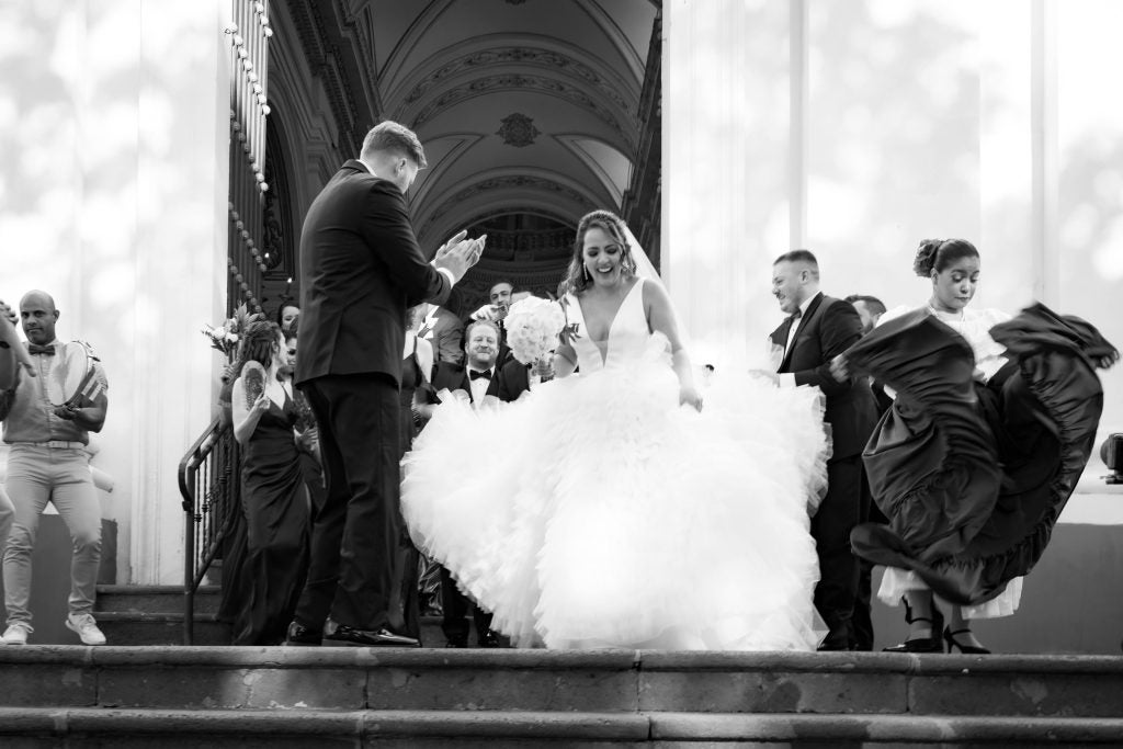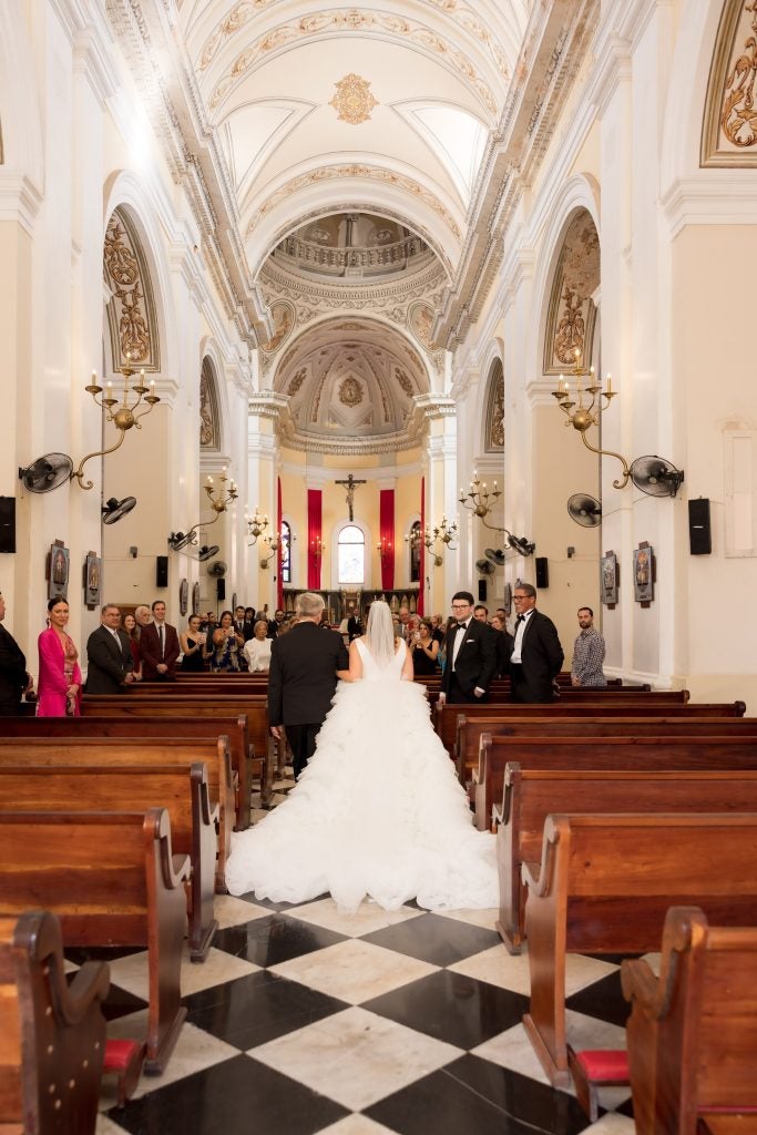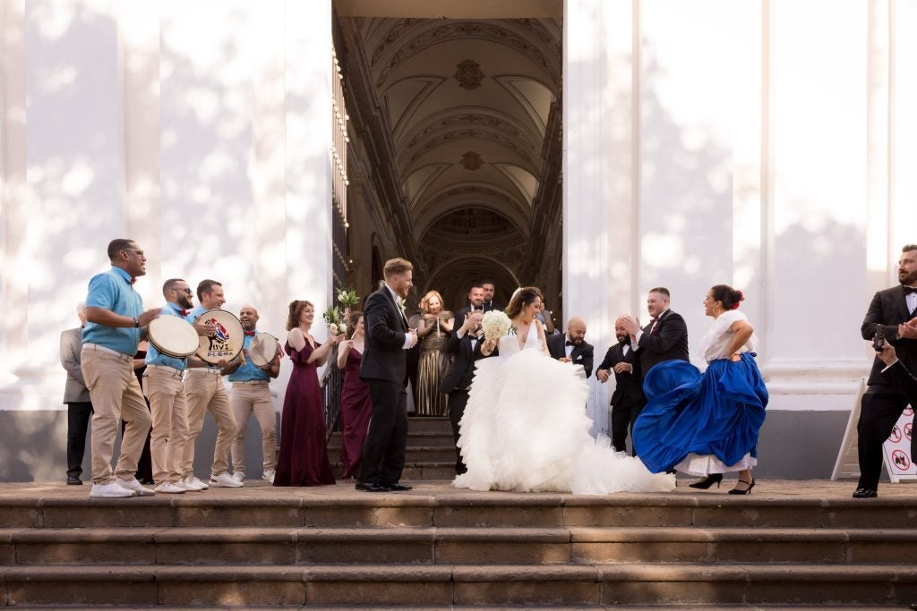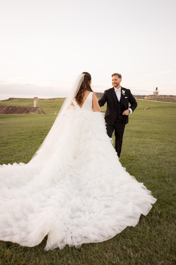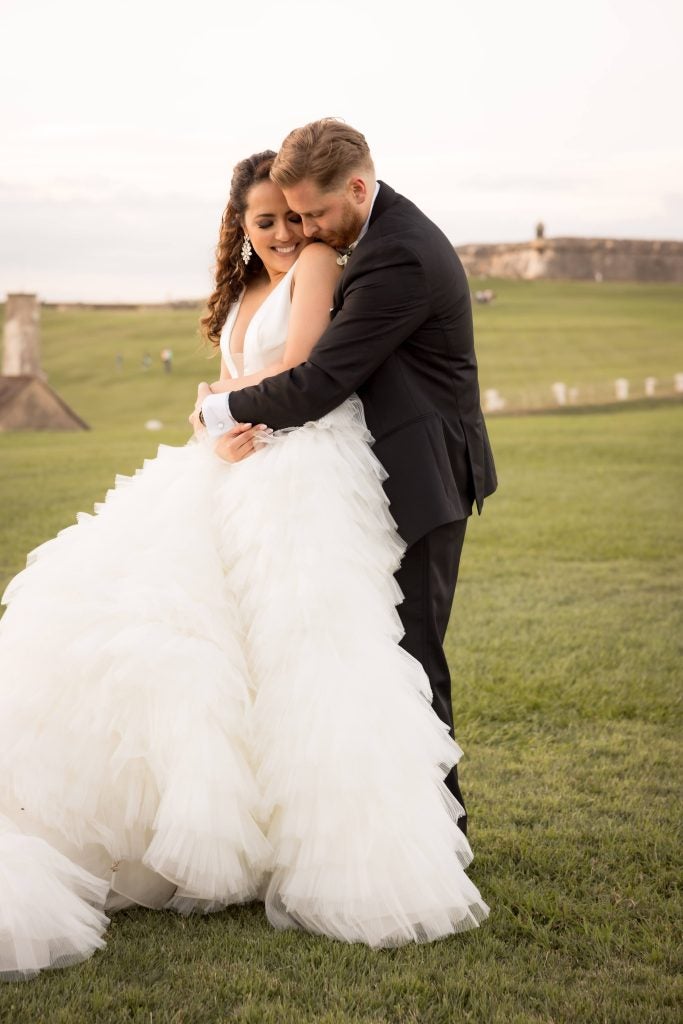 Our wedding was everything I dreamed of and more. More than anything, I wanted a wedding full of fun, family, and love. We chose Old San Juan, Puerto Rico. Most of my family is in Puerto Rico & most of Ross’s family could easily fly in from New York. Old San Juan was perfect for everything that we love – the beach, nice weather, good food, beautiful art & architecture, a mix of cultures, and cats. Our ceremony was in the San Juan Bautista cathedral – the second oldest Cathedral in the Americas. After the ceremony we surprised everyone with a live plena band and we danced around the plaza (the first plaza in old san juan) in front of the cathedral. Then Ross & I (in my Ross dress) walked to El Morro for our pictures. The reception was in Hotel El Convento – a former convent from the 1500s. For food we had a range of Puerto Rican dishes, we had some typical street food for late night snacks, and even did a tequila toast for the best man speech (not puerto rican, but Ross loves tequila).
