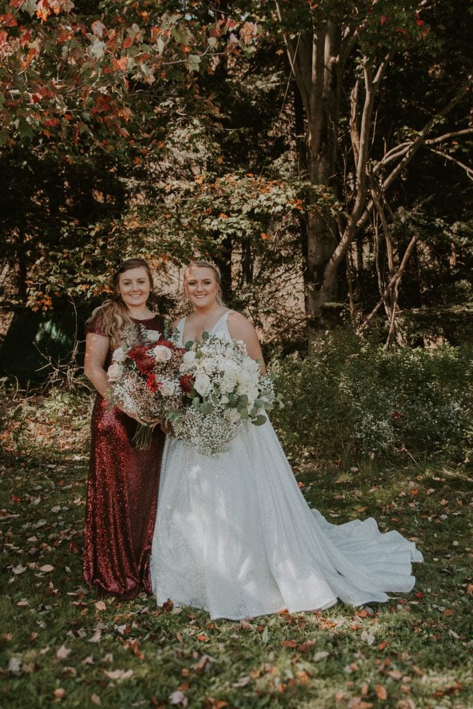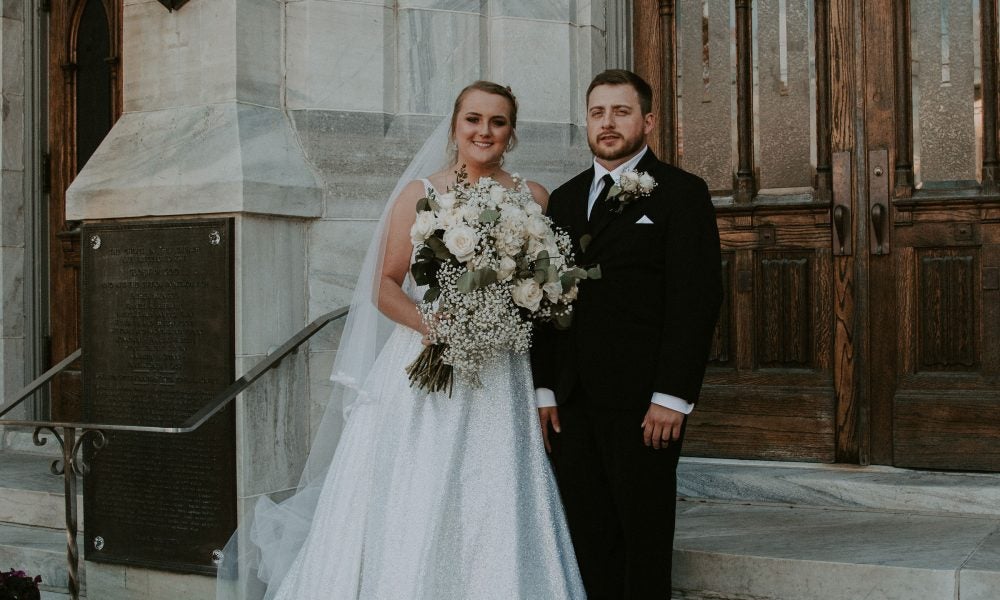 The wedding was on a beautiful sunny day in October. It rained the day before and after, but Saturday was gorgeous. I did all my own flowers with the help of my family. We had about 200 guests, including all of our favorite people. We got married in a beautiful Catholic Basilica. Not one thing went wrong that day, the food was good, the weather was nice, the cake was amazing, and the decorations turned out amazing. The day was just amazing, and I got to marry my best friend too. Photos: Hannah Lampman Photography