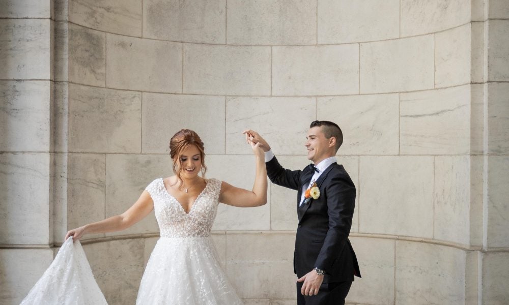 At our wedding, so many guests came up to me and said it was the most beautiful wedding dress they had ever seen. I felt like a princess all night and never changed into a reception dress because I didn’t ever want to take my gown off!