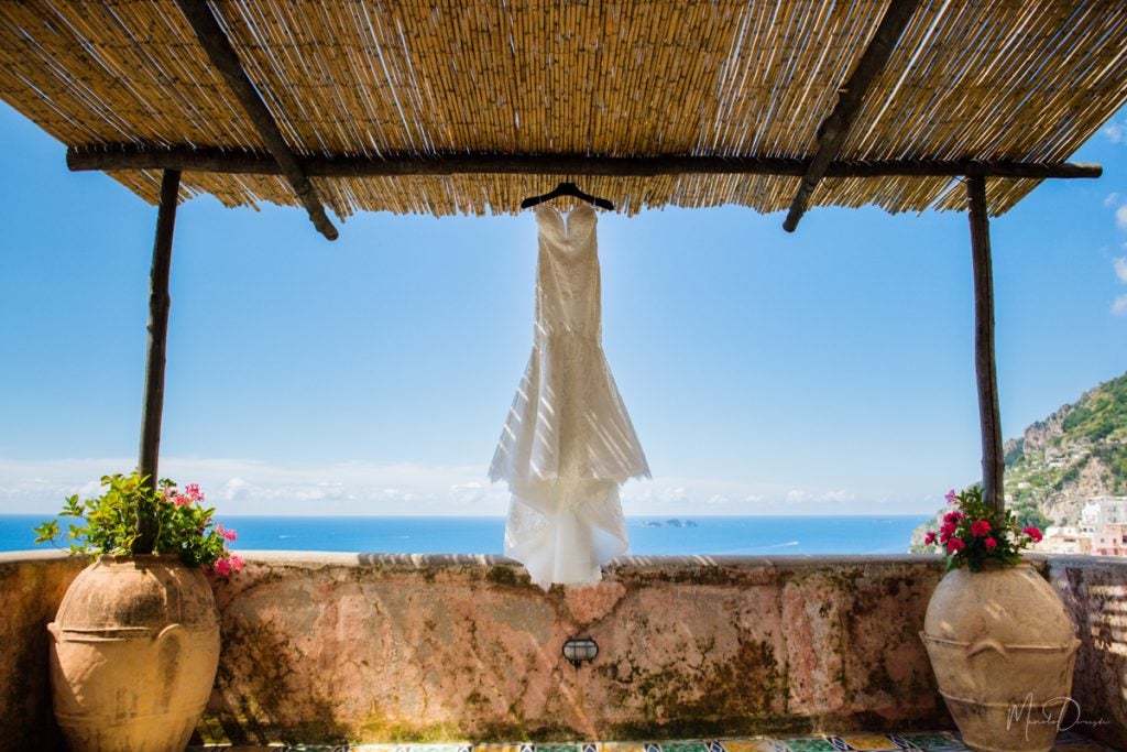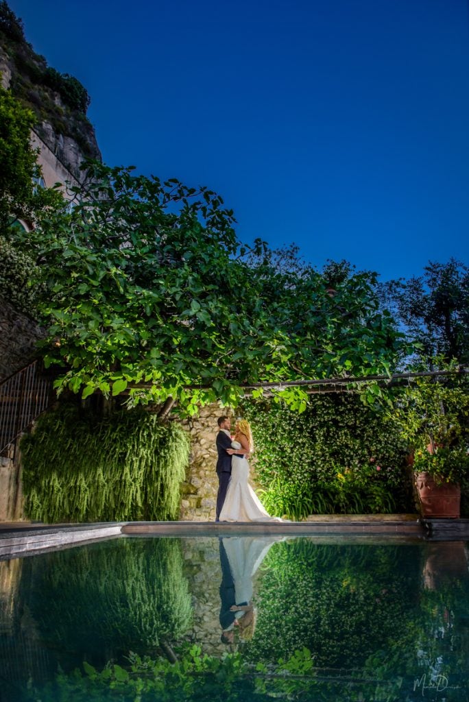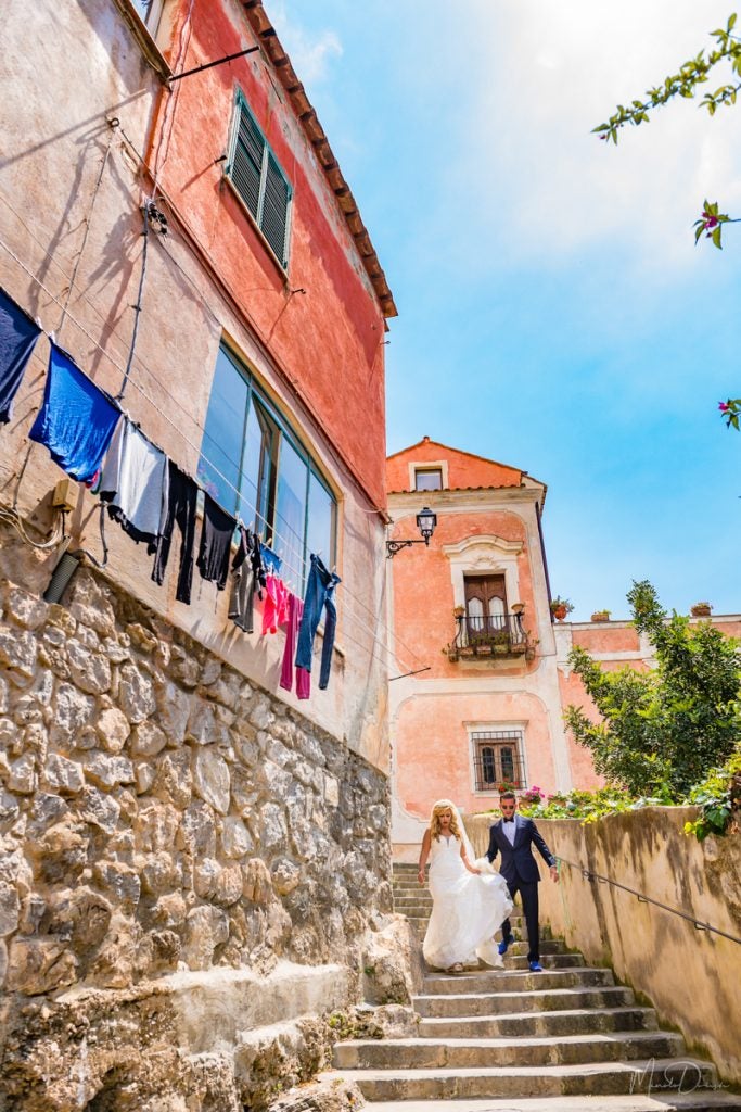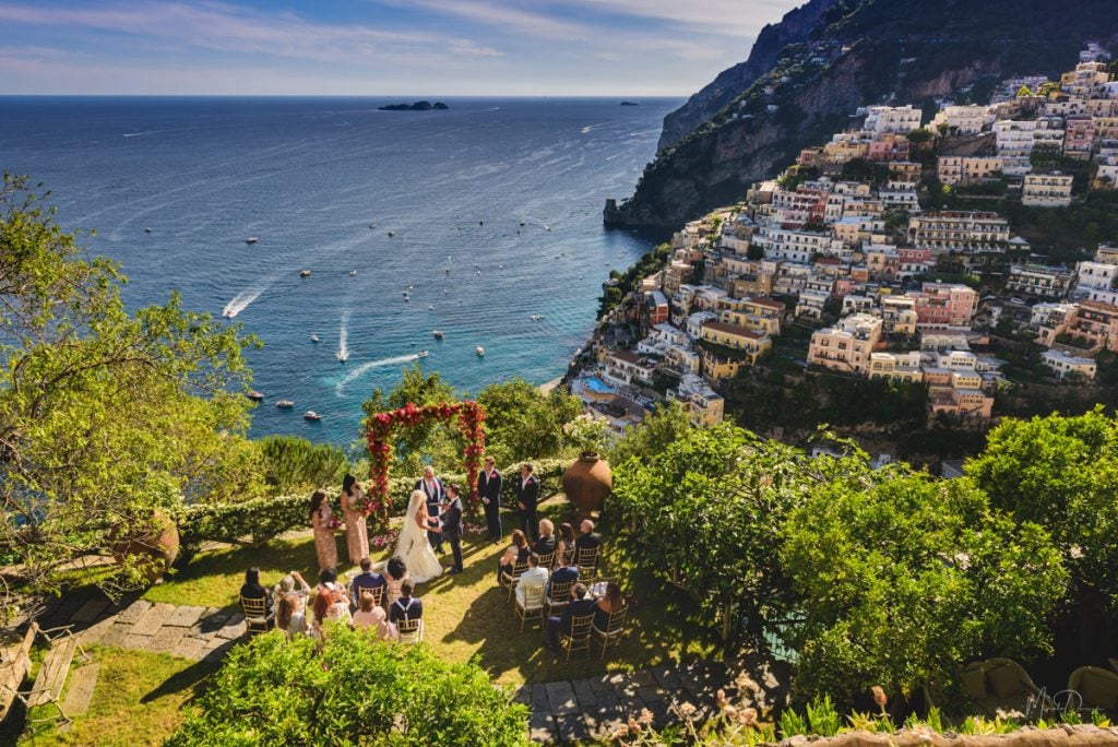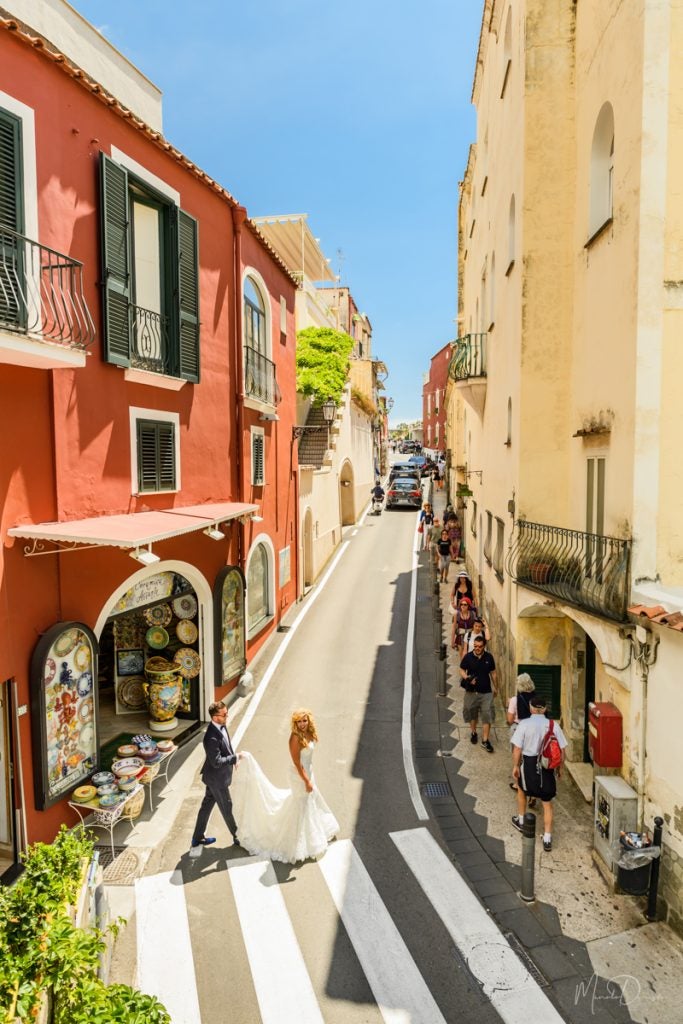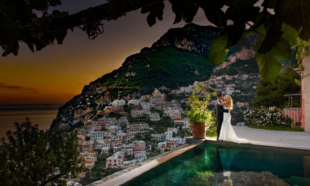 The wedding took place at Villa San Giacomo in Positano. The Villa was absolute magic. Words, pictures and videos can never portray how amazing it actually was. We were perched high on top of Positano so the views were breathtaking. All rooms were uniquely designed and had their own character. Being in Positano, we wanted to highlight the natural beauty of the city. We wanted vibrant colors, Italian tiles, lemons and the most authentic food you can have. Since Positano is so colorful, we did not want to do black tie. Justin wore a blue tux with a blue lapel and blue velvet shoes. His style was definitely not traditional, and it looked so good against every backdrop. Bougainvillea’s made up the bouquets and center pieces, with touches of fuchsia, gold and white. Honestly, not everyone was thrilled about the far destination we chose but we can say that the Villa was thoroughly enjoyed by all and the wedding was a night no one can soon forget. Bringing everyone to one of our favorite places and sharing our passion for travel is a gift we always want to share. We can ramble all day about every moment and every detail that made the wedding perfect because it really was absolutely perfect. Even the song we selected felt like it was custom made for us. We chose “Perfect” by Ed Sheeran but the duet version with Andrea Bocelli. We were even able to blend Italian in to our song. A song we both tear up to every time we hear it. It really was perfect!
