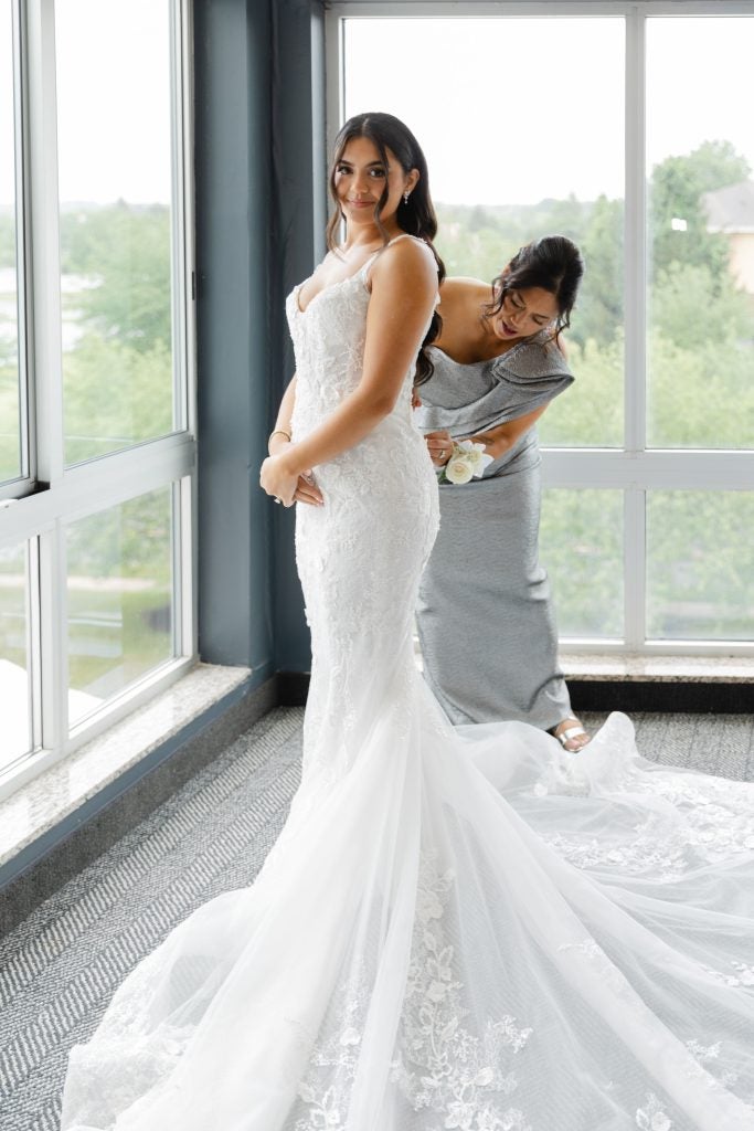 I ultimately picked the Blanche Bridal Esmee gown. I fell in love with the details and the fit of the dress immediately. I loved the long train and my consultant paired it with the most perfect long matching veil. The embroidery of the dress reminded me a bit of my culture. Handmade Filipino designs have a lot of detail and embroidery, which made me fall even more in love with it.