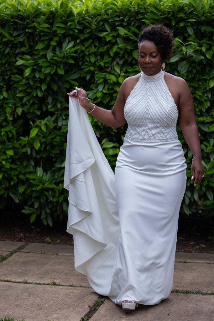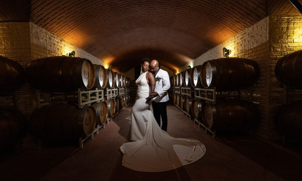 Our wedding included 170 of our closest family and friends on the beautiful grounds of Marais Vineyards and Winery in Bealeton, Virginia. We moved the ceremony indoors because the weather was too unpredictable for our musicians and some of our elderly family members. All in all, it was a magical day that flew by!