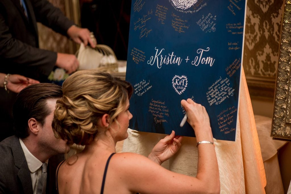 Before the ceremony, we exchanged gifts and also exchanged letters that we hand-wrote to each other. The letter that Tom wrote me made me cry and it was so special! I gave Tom a journal that I filled out called “my favorite moment of the day” which one of my bridesmaids had given me when we got engaged– I had filled it out every day since we got engaged leading up to the wedding. We also had our first look outside the front of the hotel with our friends and family watching, and it was such a special moment!