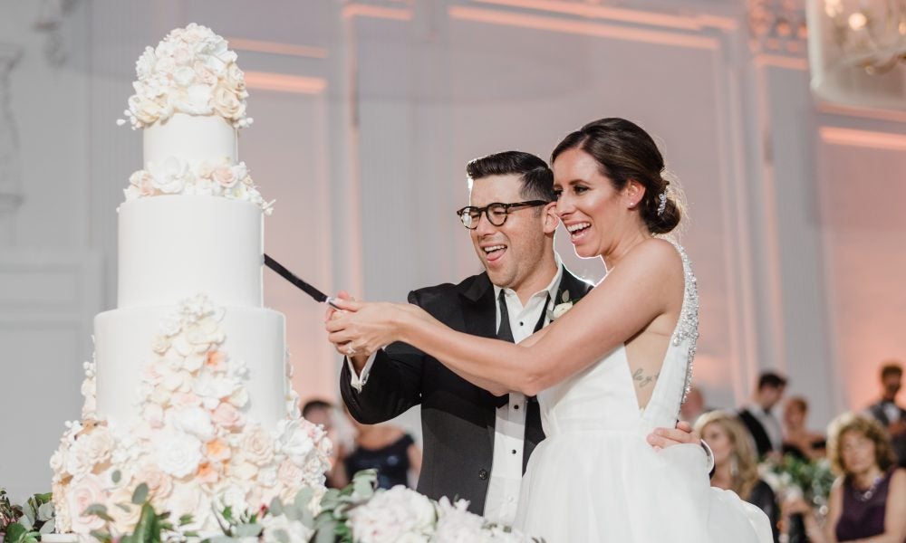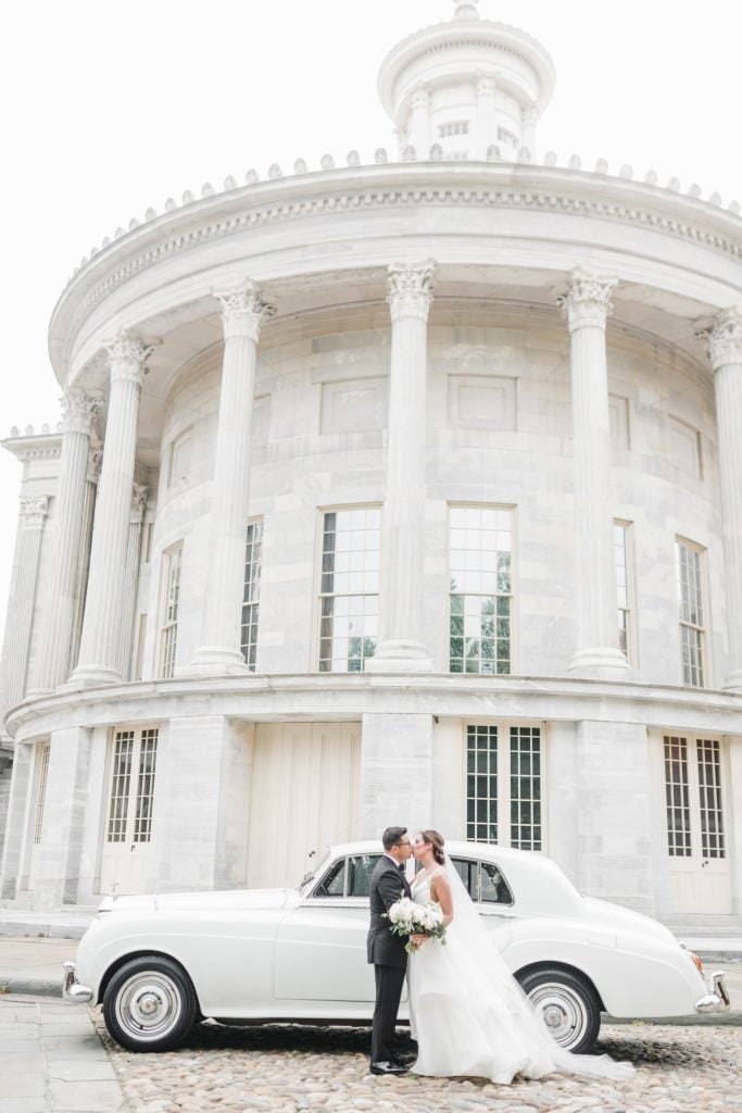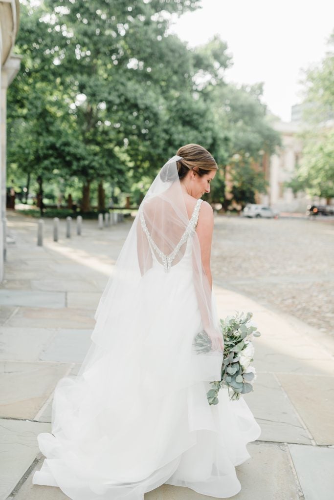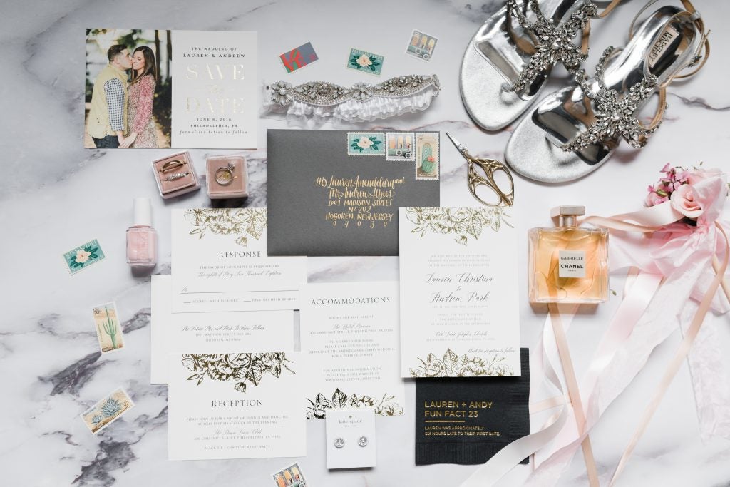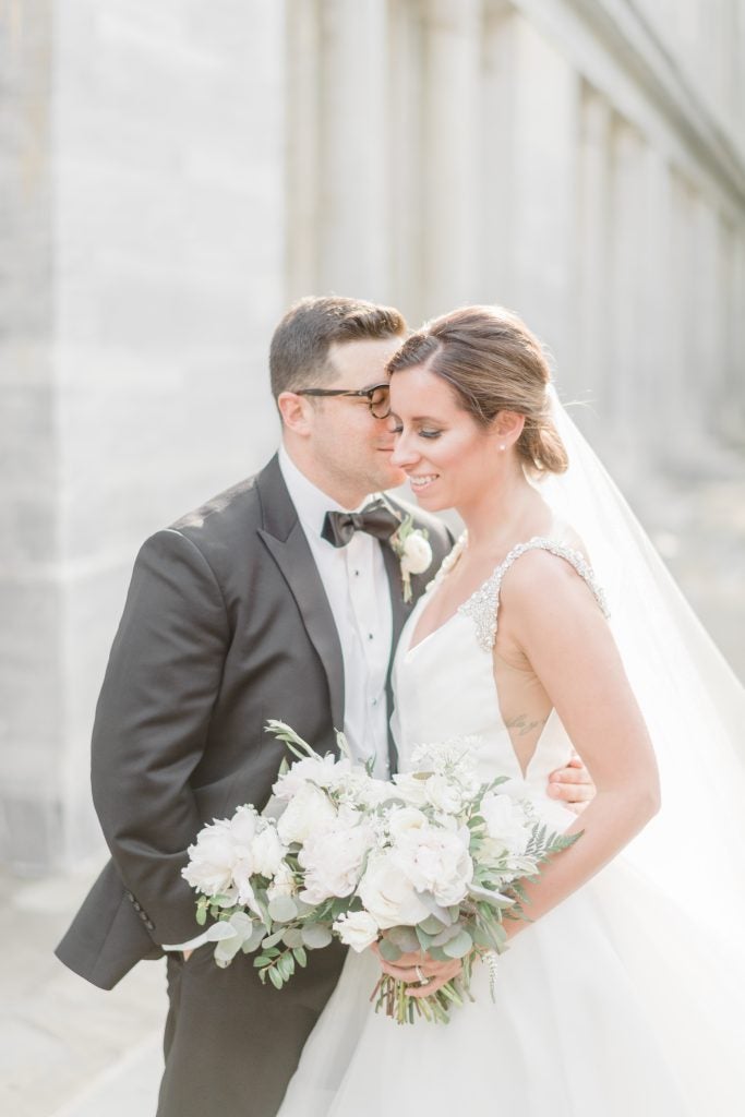 We both wanted a classy, timeless black tie wedding so we decided upon Old City, Philadelphia. Since Andrew is from Los Angeles, we had many out of town guests who were visiting Philadelphia for the very first time so we felt Old City was perfect for touring Philadelphia’s historic sites. We chose Old Saint Joseph’s Church for our ceremony with the reception two blocks away at the Down Town Club. The Down Town Club is located on the 11th floor of the historic Public Ledger Building and overlooks the Liberty Bell and Independence Hall. Cescaphe is synonymous with an overabundance of food which made our reception decision easy- 40 passed appetizers with two stations and two live stations for our cocktail hour and a half, three entree choices chosen table-side, a Viennese dessert hour and of course, a 4-tier cake!