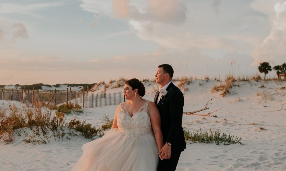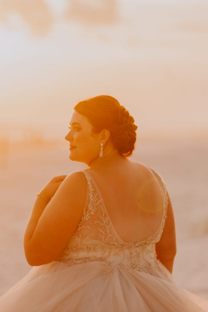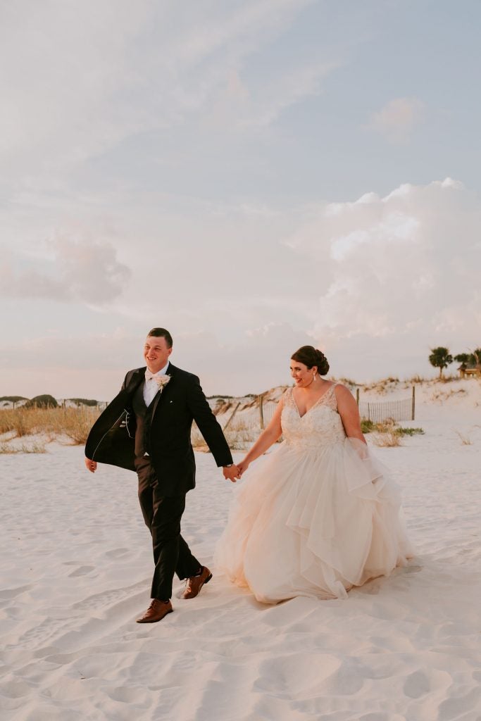 Our wedding day was a long time coming! We had been engaged for almost two years but were waiting for Zak to finish his time in Japan before we tied the knot. I had many ideas as to what kind of wedding I would have but decided we were going to get married in Gulf Shores because Zak is from the area. I wanted to make things easier on his family as he still has grandparents that we both wanted there. Plus, bring from Kentucky we love any excuse to go to the beach. The whole week leading up to the wedding was full of beach days surrounded by lots of friends and family. Our venue had this beautiful terrace where we were going to get married and we went for a light, soft, and romantic feel. We wanted to bring the outdoors inside and went with simple decor so that the flowers and the view could take center stage. We had the perfect sunset as we said our vows and had a reception full of seafood and cocktails. The day was only made sweeter by being able to dance with my Daddy to a song he had recorded specifically for our dance. The wonderful gift of organ donation saved my Dad a few years ago or he would not have been here for this special time. We were beyond blessed to have a day packed full of love, fun, dancing, all kinds of laughs, and memories we will always cherish.