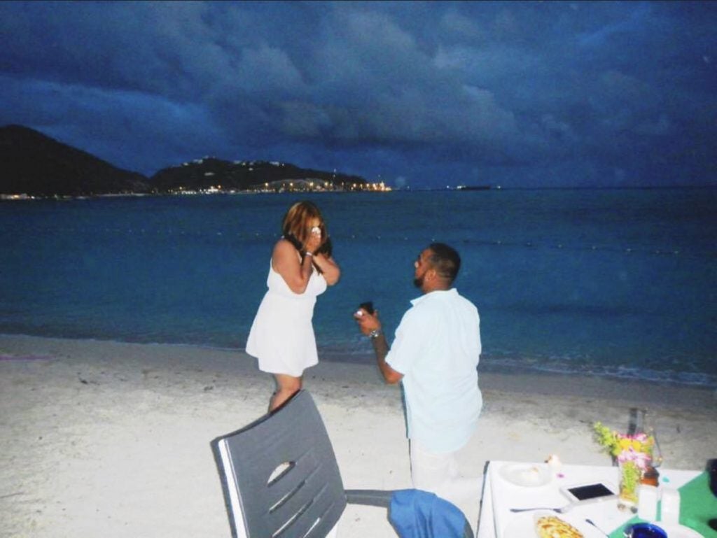 Jonathan proposed in St. Maarten on the beach after he set him a candle lit dinner in the evening. We have known each other since were 13 in middle school and had been dating since we were 21 in college! We were dating for 4 years and went on vacation and I had no idea that he was going to propose in 2016!