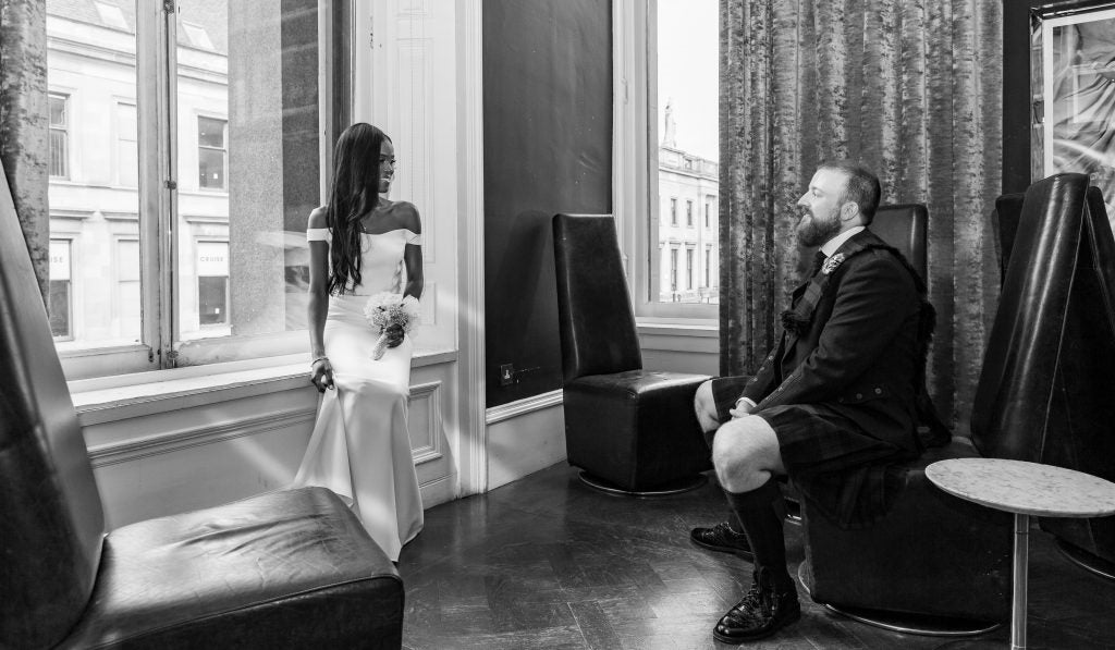 Knowing that Richards father, Robert was not in the greatest health and would not be able to travel long distances, we knew we wanted the wedding to take place in Richards hometown, Glasgow, Scotland. The wedding consisted of many Scottish traditions including a hand fast and Richard wore a kilt. The ceremony was intimate with 25 of our family members and friends. Photos: Graham Milne