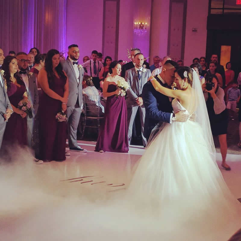 We had so much fun at our wedding! Our color theme was mulberry, navy blue, silver, and lavender. We got married at St. Matthews Parish and it was a beautiful ceremony with our family and friends. Even family from Portugal came, so it made it much more special. Our reception took place at Mississauga Convention Centre. Everyone there made sure that everything was perfect. Although I explained to them how I wanted everything to look, I never imagined it to look the way it did. Food was delicious (even though we didn’t have time to eat much). Music was so fun (English and Portuguese Music). We even had Tropicana Queens come and perform, which everyone loved. We just loved sharing the day with all our friends and family.