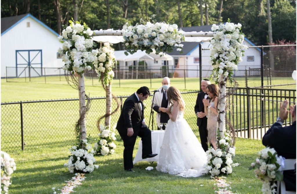 Due to some family circumstances (groom’s mother was re-diagnosed with cancer a couple months after we got engaged), we set our wedding date for 3/21/20. Then COVID happened which forced us to cancel only 9 days before. At the time, we postponed to 9/5 but within a few months we realized we were not going to get to have the wedding we planned. My mother in law’s condition got worse and we realized we needed to get married soon. Luckily, we were able to get married at my father’s day camp where we were able to have a small outdoor wedding. In early June we set a date – 5 weeks away. We ended up having the most special wedding with our closest friends and family.