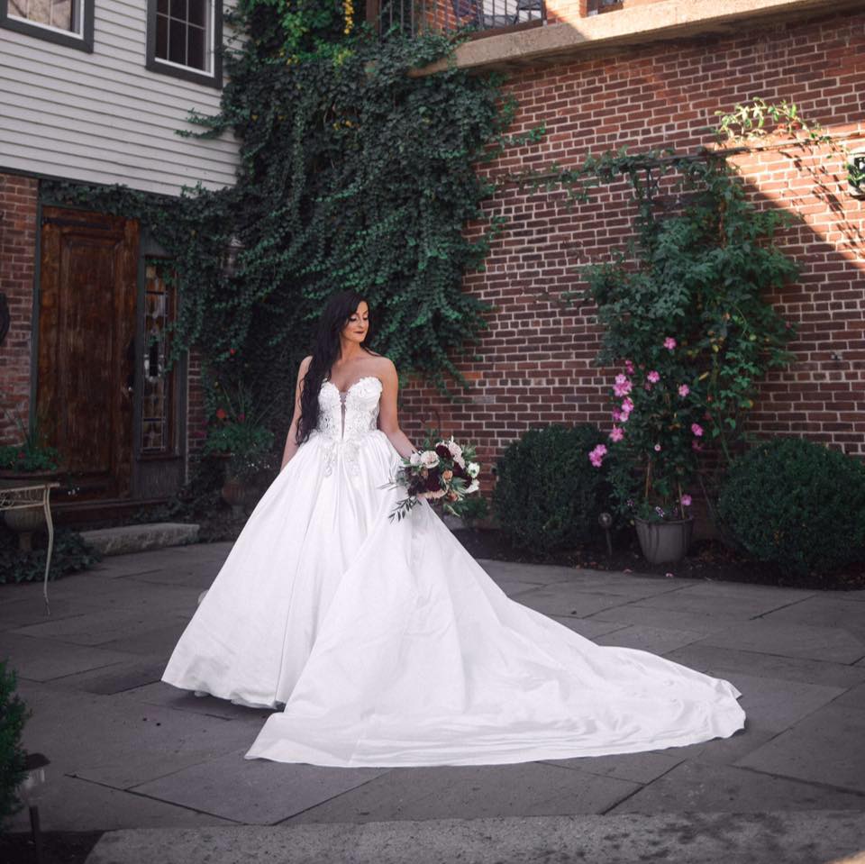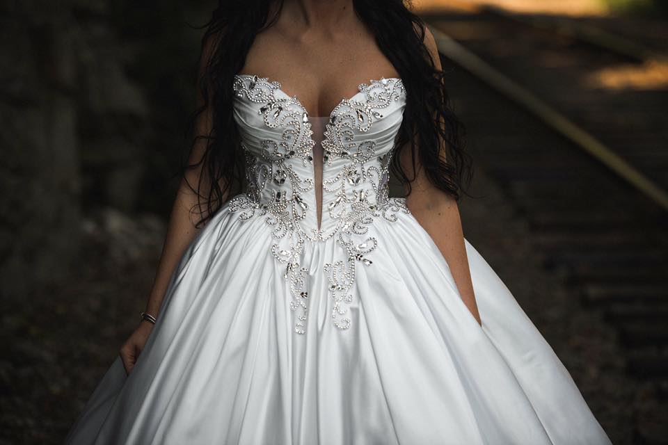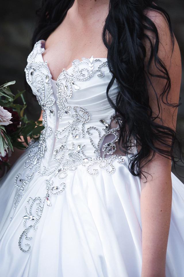 I had a vision in my mind. I wanted a ballgown, sweetheart top, corset back, and intricate crystal detail. Antonella paid close attention to all of my criteria, and selected several choices for me to try on.