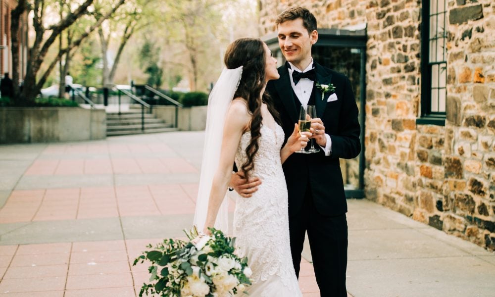 Ben and Shannon got married on a sunny and warm Saturday in April. Ben’s uncle officiated their ceremony and the reception took place at a historic mill in Baltimore, Maryland. From the spring blossoms to the bistro lights, the wedding was a beautiful and romantic event. Ben and Shannon were grateful to be surrounded by so many family and friends to help them tie the knot.
