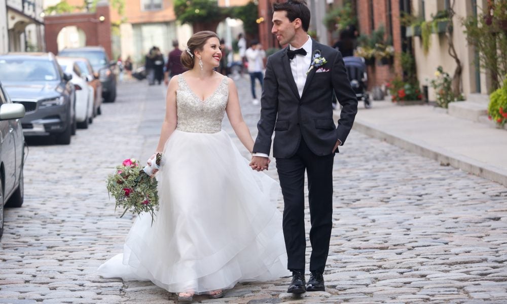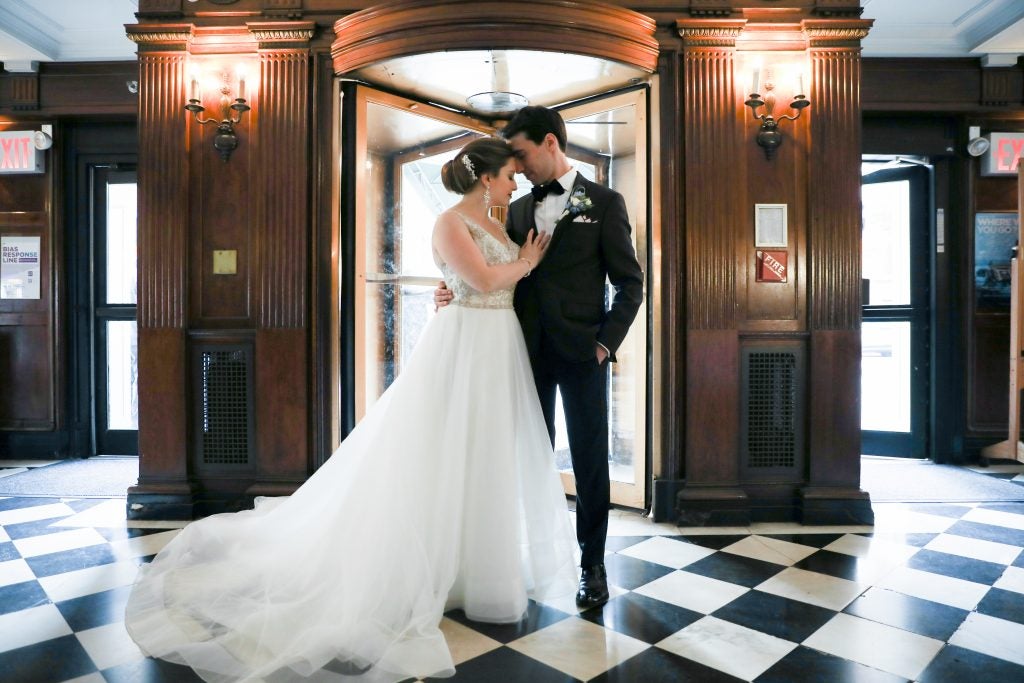 I always dreamed of going to Kleinfeld, and I had a pretty good idea of what I was looking for: an a-line dress that wasn’t too heavy with some definite beading or sparkle. When I got to my appointment, Debbie immediately knew what I was looking for. I tried on five or six dresses, and the last one was it. I started to realize it when the family of another bride commented on how perfect it was. Debbie asked if I wanted to meet the designer, since it was a Michelle Roth trunk show. She came in, picked out a veil, and I got chills. However, I had one more dress appointment that day. Debbie completely understood, gave me her card, and told me to come back the next morning if I wanted the dress.