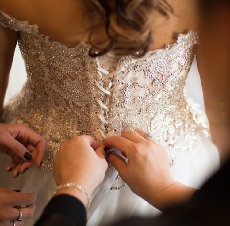 Shopping at Kleinfeld has always been a dream of mine, especially to be a Pnina bride. I made my appointment for Kleinfeld about 10 months before the wedding and got blessed with Antonella! I showed her what I was thinking and she literally showed me the dress of my dreams. It was the first one and I didn’t even want to try on any others! It is dress 14563 in Pnina Tornai’s 2018 LOVE collection. I loved the ball gown always and also wanted a lot of bling on the bodice. This dress looked very similar tothe photos I showed Antonella but better!! The Swarovski crystals were perfection! The dress made me feel like a princess ! As well as the Christie Lauren headpiece and veil which tied everything together perfectly! Shay walked by and said “I just have to admire you in that dress, it was made for you!” That made my experience even better! I ended up losing 90 pounds for the wedding. Antonella let me come back and get remeasured about 7 months until the wedding because I was on the way to my goal. I ended up going from a 22 to a 16 from that difference in my measurements! It was even taken in a lot more!!I had a great dress experience!