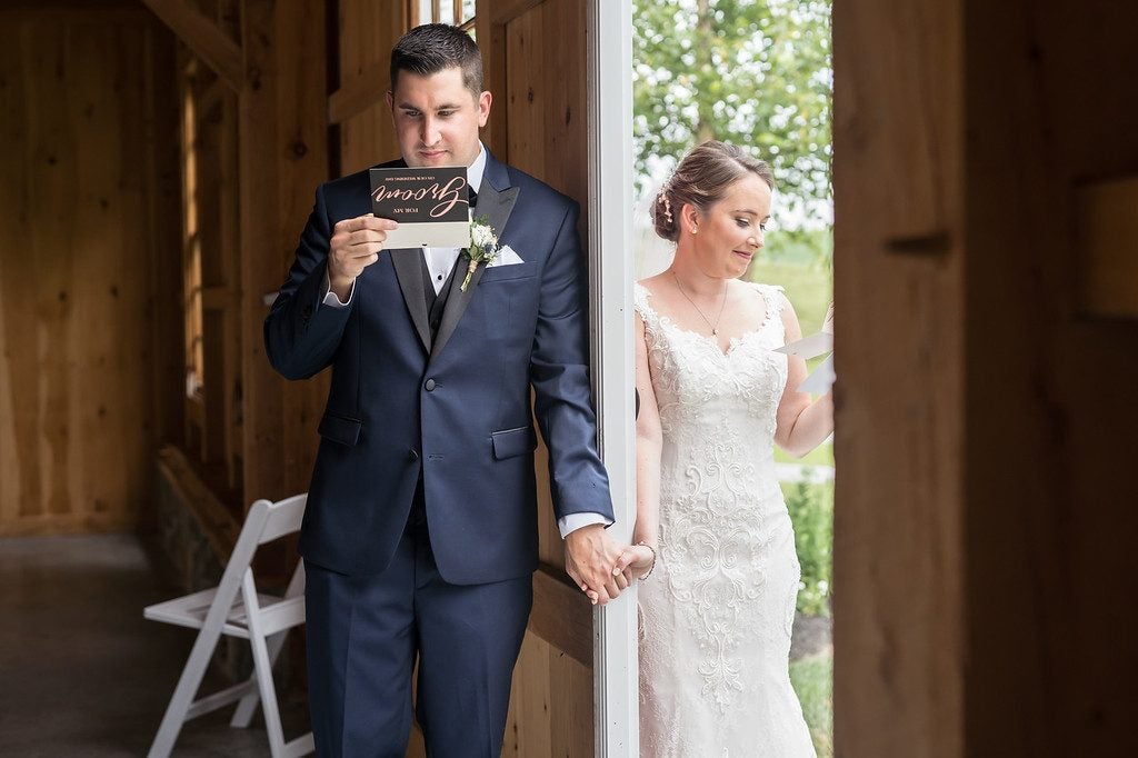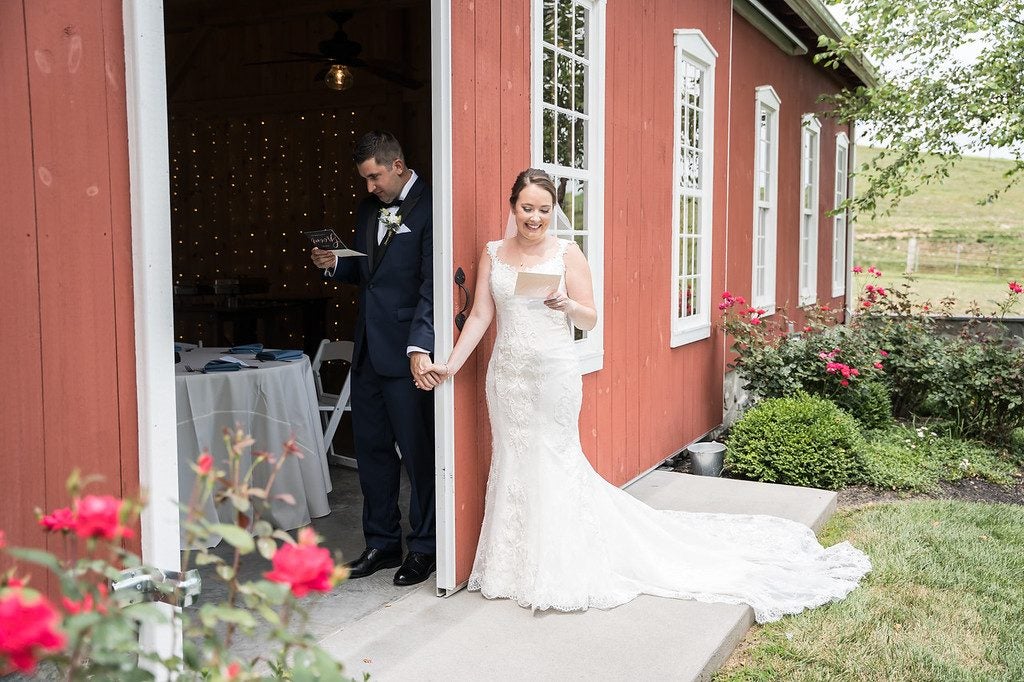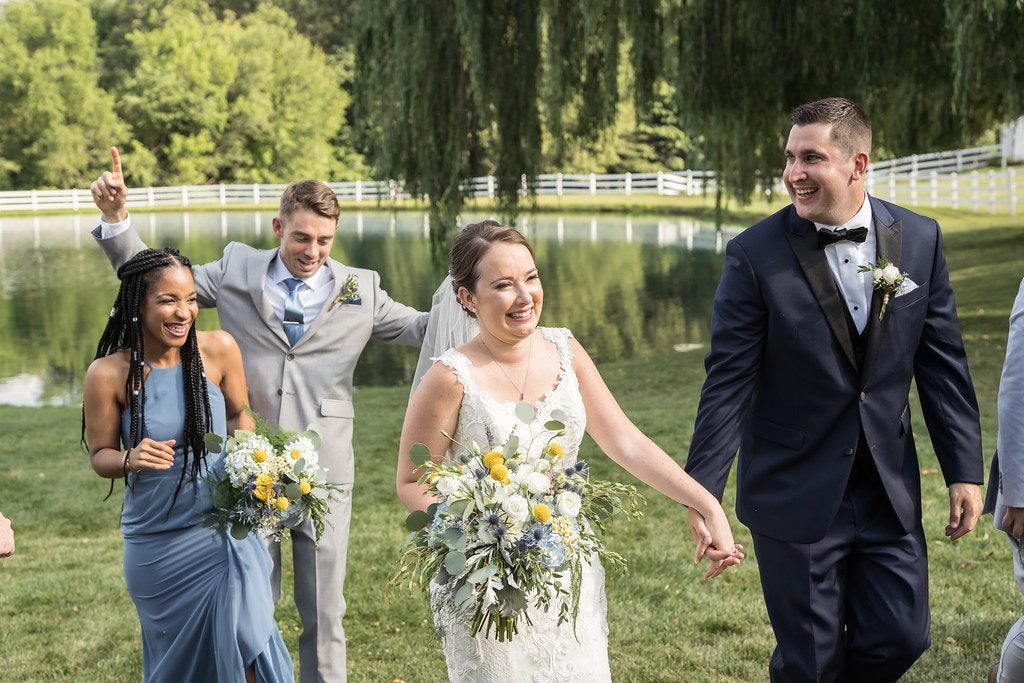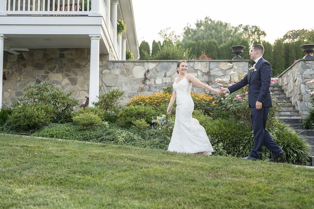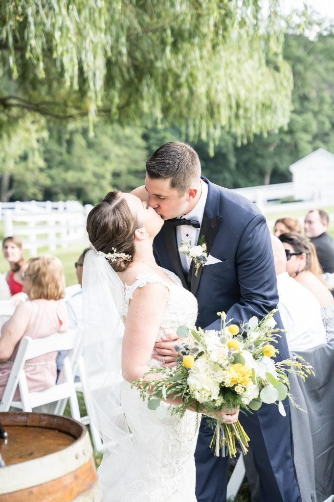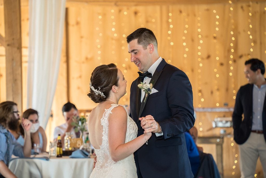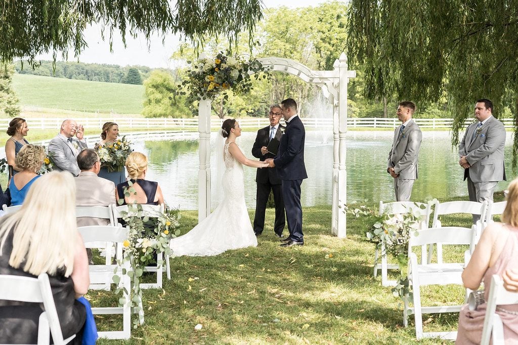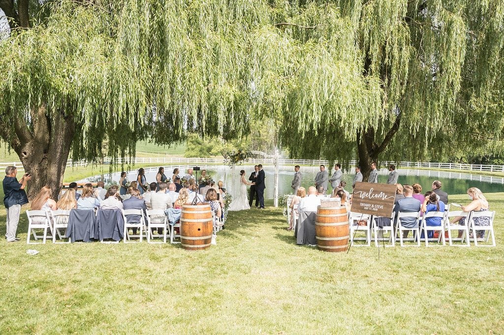 Steve and I, like many others, were not certain we would be able to get married on our original day. Due to tremendous luck, previously selecting a large, outdoor venue, and lower COVID numbers, we were able to proceed with a smaller guest list! The uncertainty leading up to the wedding really helped to put into perspective that the only thing that truly mattered was that Steve and I would be able to commit our lives to one another that day. The day was magical. Words cannot express the gratitude we experienced being surrounding by our loved ones, in person or virtually, when we expressed our love to one another under a beautiful weeping willow tree in front of an expansive pond. The reception carried on in a gorgeous barn that was simply beautiful.