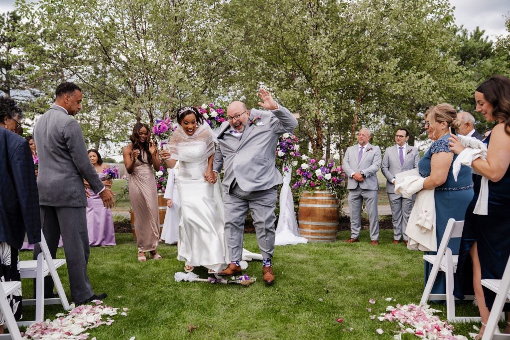 We jumped the broom together which is a wedding ritual in which a couple leaps over a broom after their vows to symbolize their union and a new beginning. The tradition has deep roots in African-Canadian and American history where it was used by enslaved people who couldn’t legally marry. Today, black people often incorporate this tradition to honor their ancestors and provide a symbolic cleansing of past hardships before building a new life together.