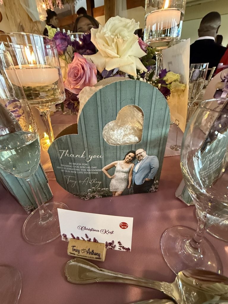 We also had tabletops name plate corks with our names engraved, a bomboniere of an Italian wine plate, and cork purchased in the Amalfi Coast which was a city we visited together the year prior. We celebrated with a Caribbean black rum cake and Italian confetti from Sulmona which was another city in Italy we visited and the region where Anthony’s family is from.
